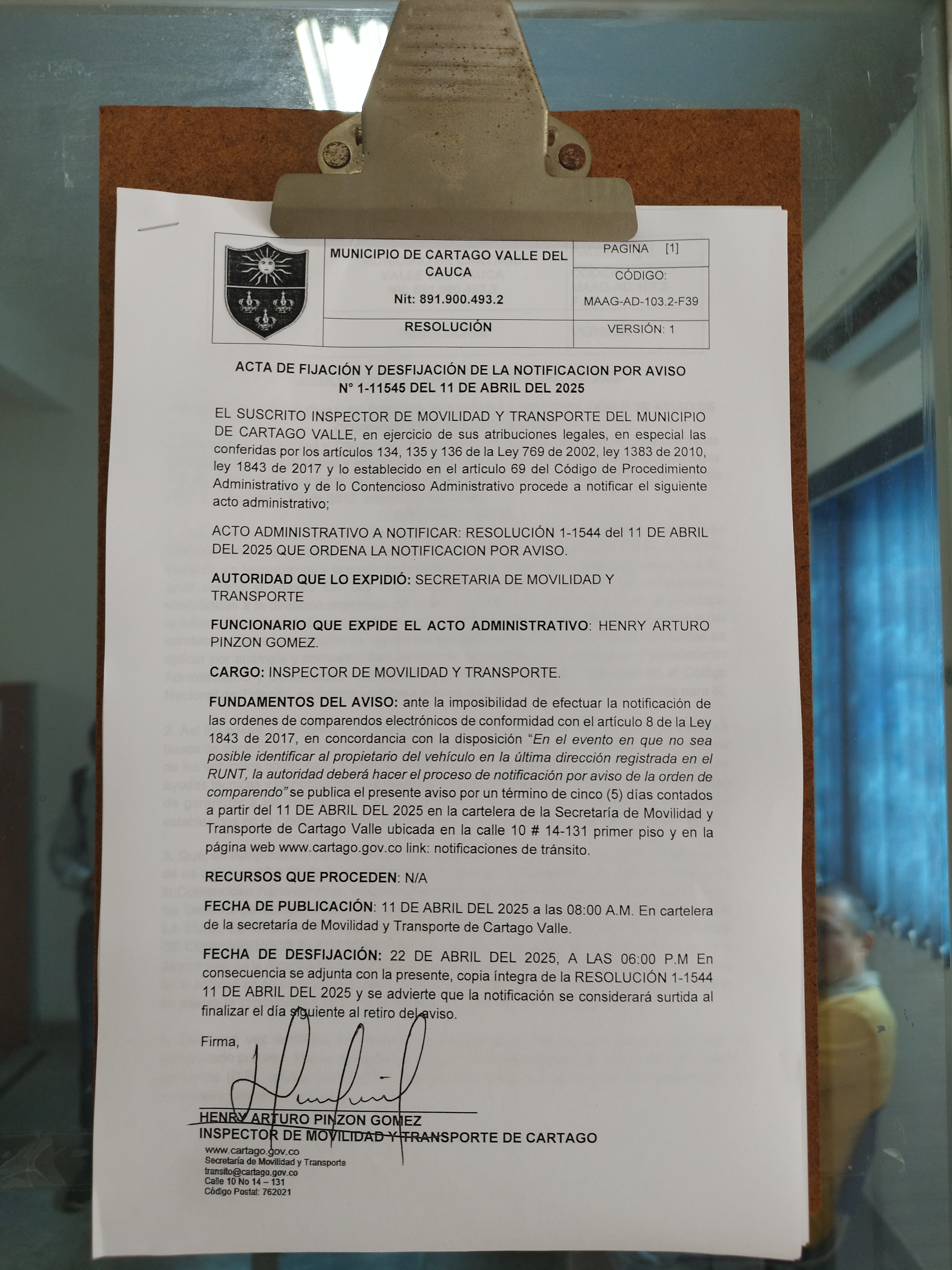 NOTIFICACION POR AVISO MANDAMIENTO DE PAGO N° 1-08477