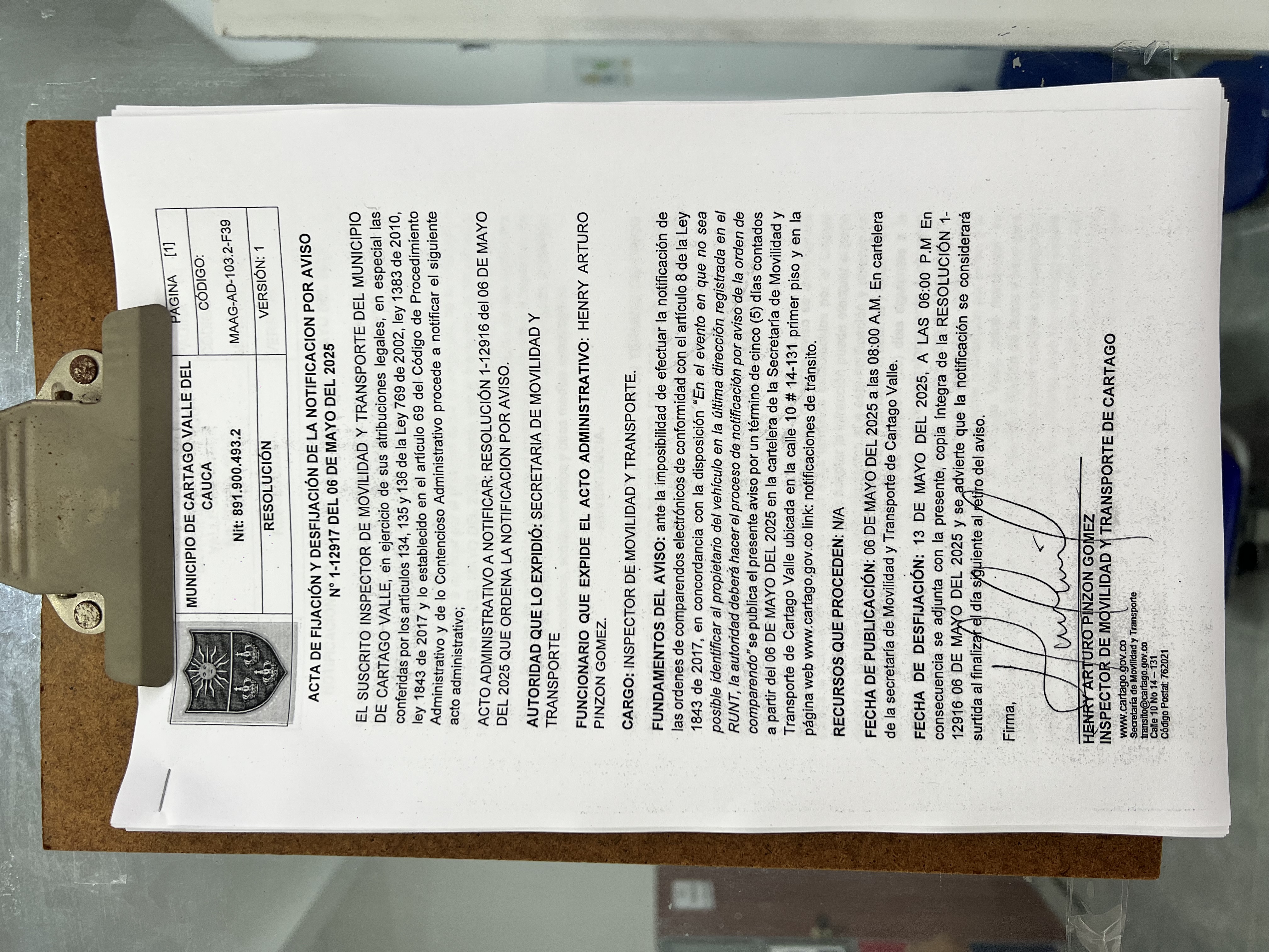 RESOLUCION No. 1-12916 DEL 06 DE MAYO DEL 2025 QUE ORDENA LA NOTIFICACION POR AVISO