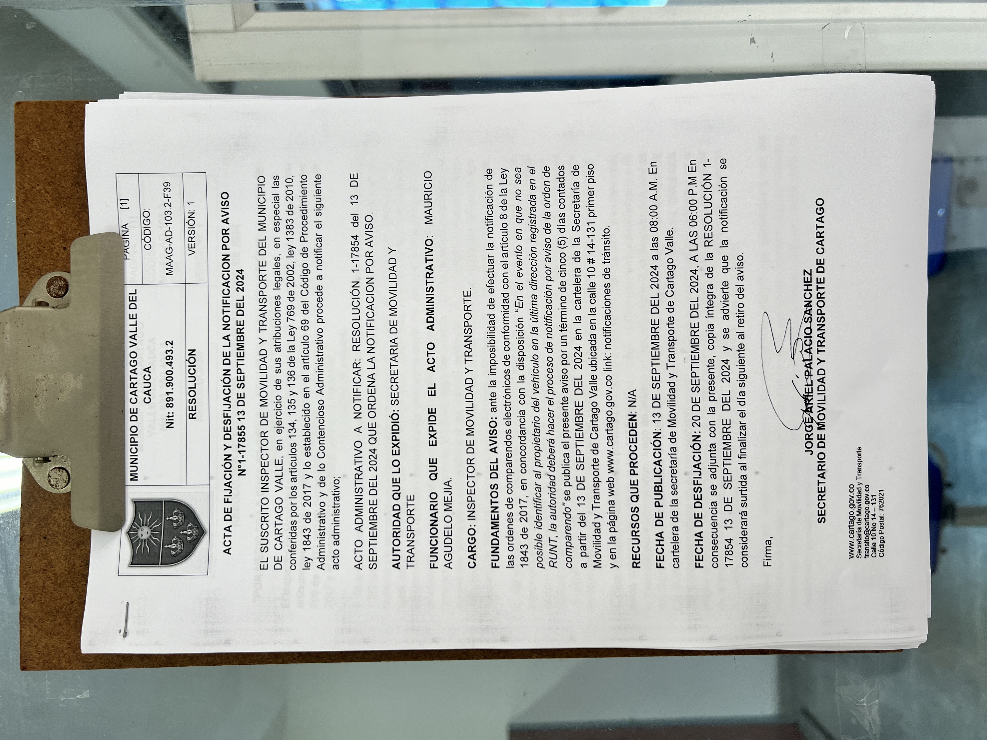 RESOLUCION No. 1-17854 DEL 13 DE SEPTIEMBRE DEL 2024 QUE ORDENA LA NOTIFICACION POR AVISO