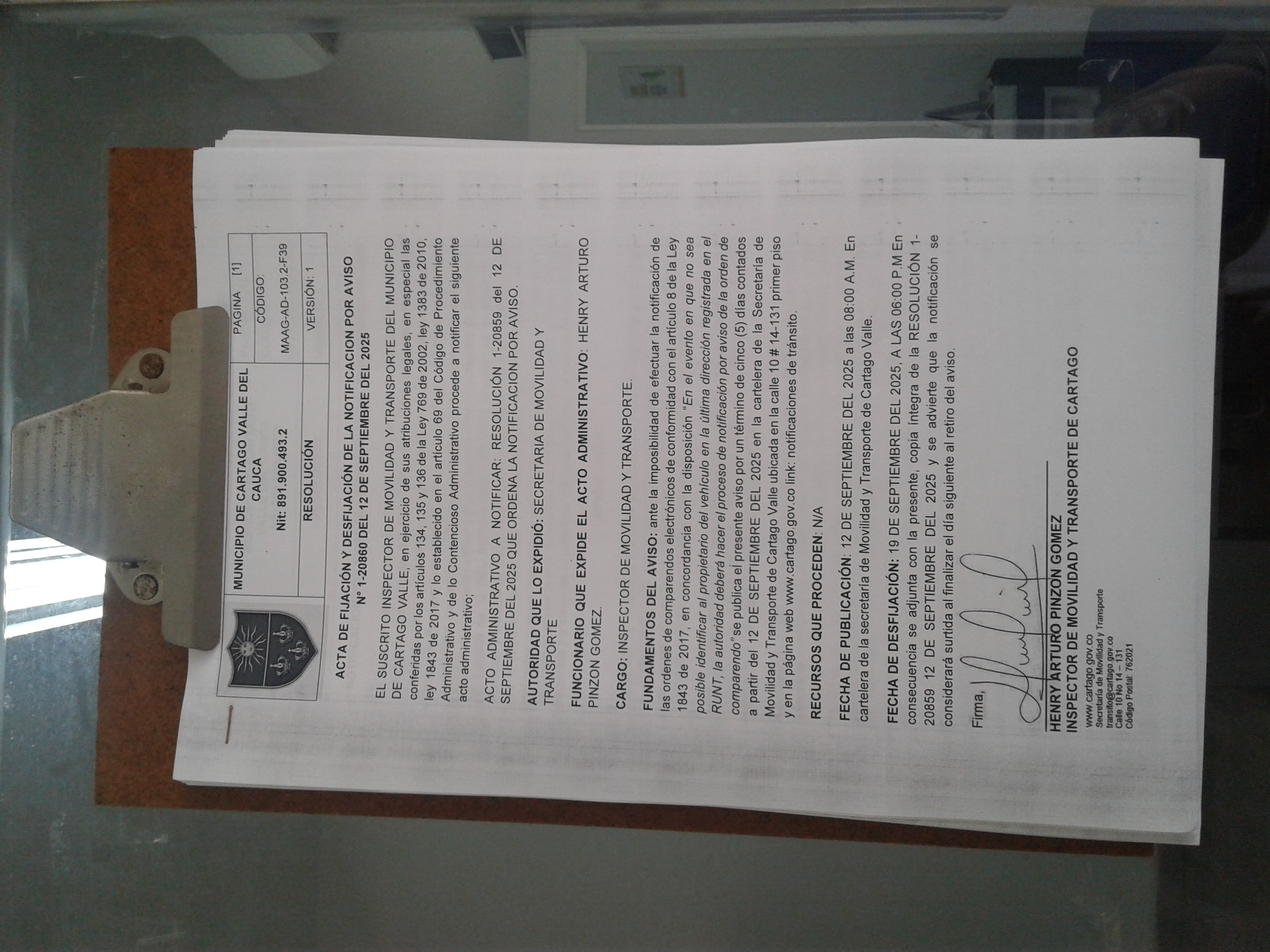 RESOLUCION No. 1-20859 DEL 12 DE SEPTIEMBRE DEL 2025 QUE ORDENA LA NOTIFICACION POR AVISO