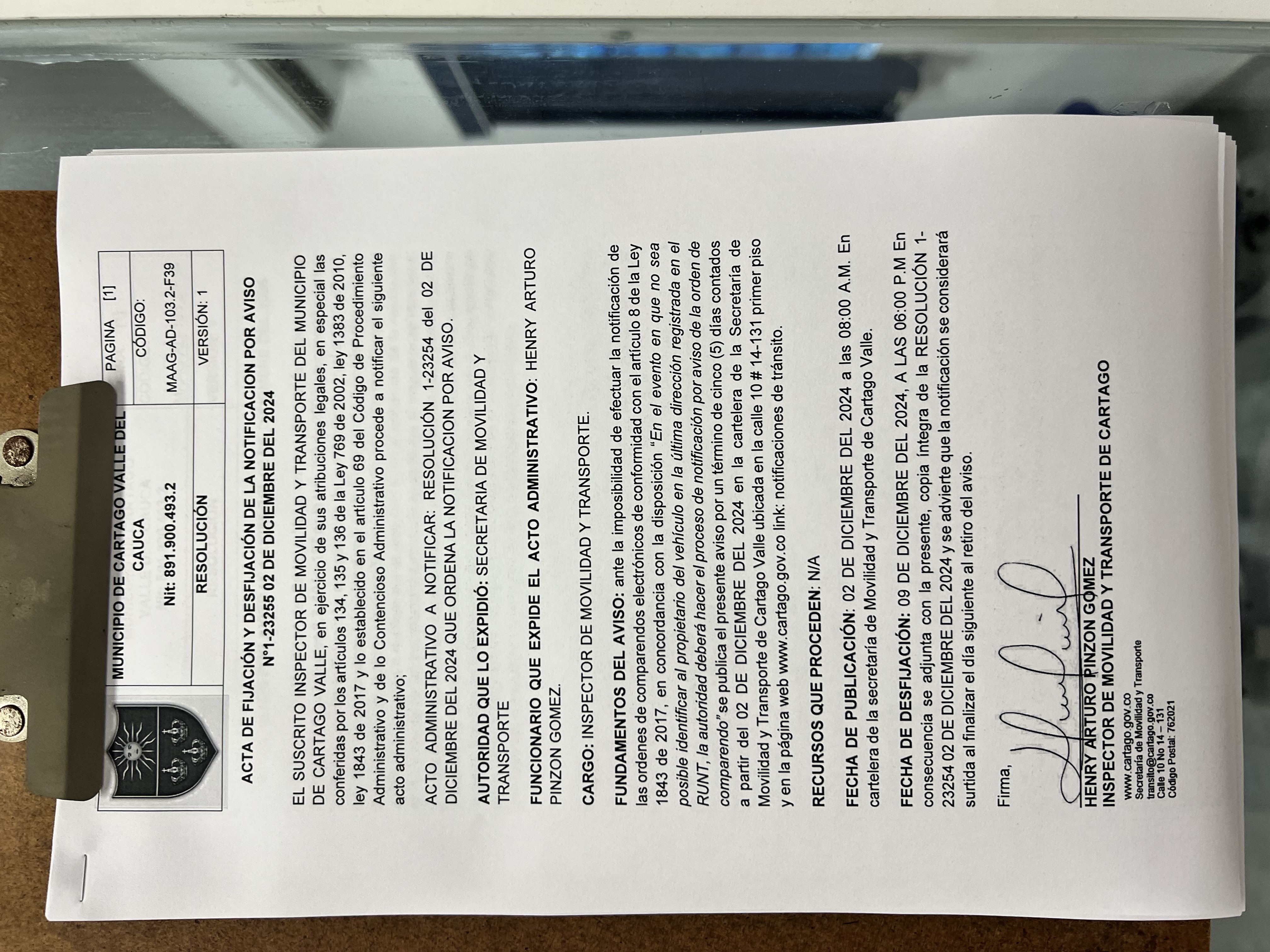 RESOLUCION No. 1-23254 DEL 02 DE DICIEMBRE DEL 2024 QUE ORDENA LA NOTIFICACION POR AVISO