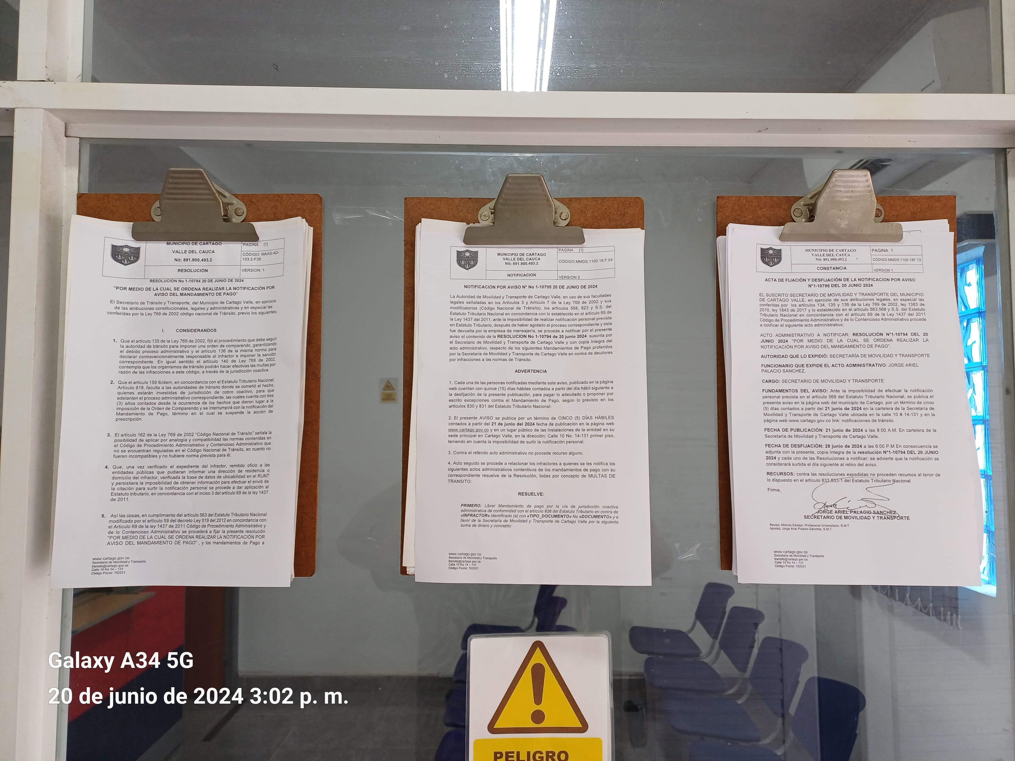 RESOLUCION NOTIFICACION POR AVISO DE MANDAMIENTO DE PAGO SIN DIRECCION 1-10794 DEL 20 DE JUNIO 2024