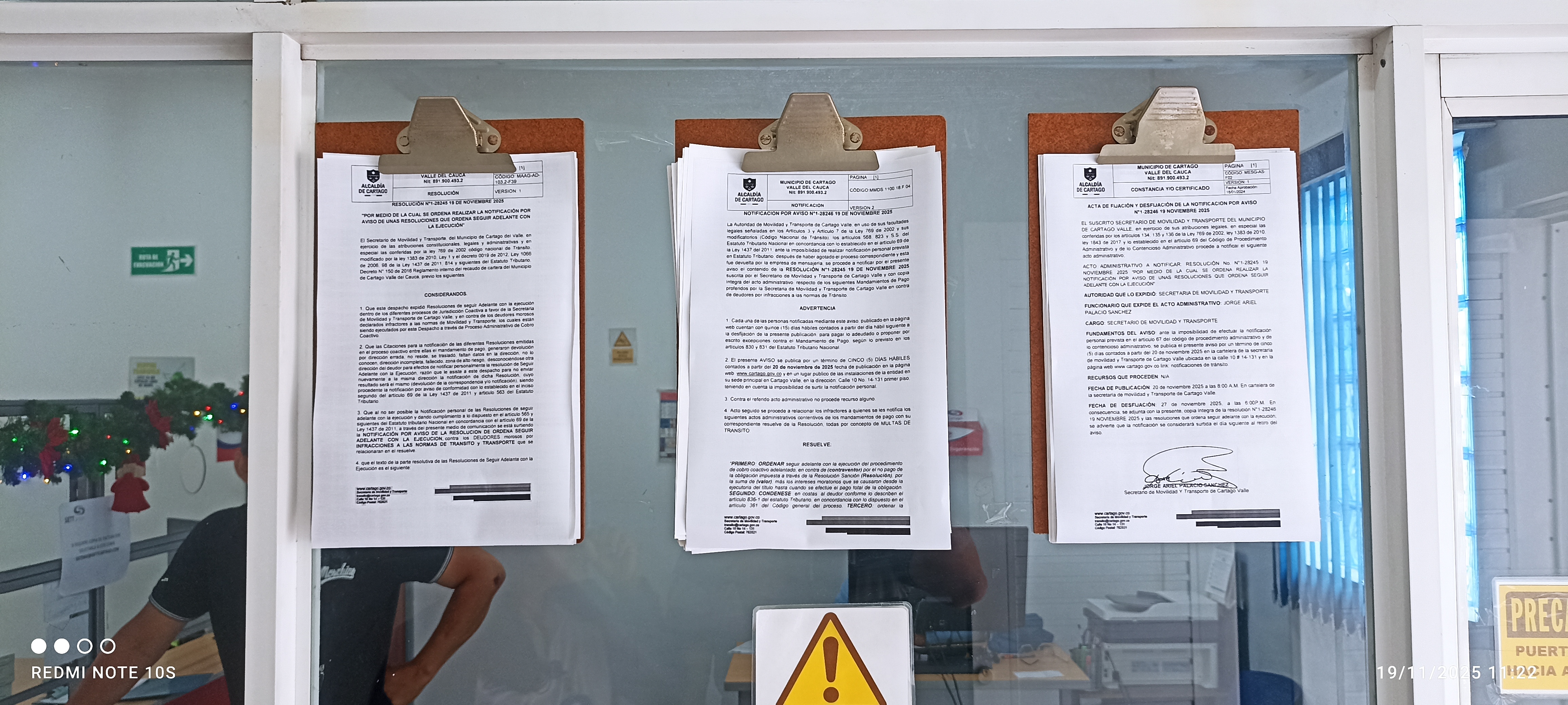 RESOLUCION EJECUTORIAS NOTIFICACION POR AVISO 1-28245 19 NOVIEMBRE 2025