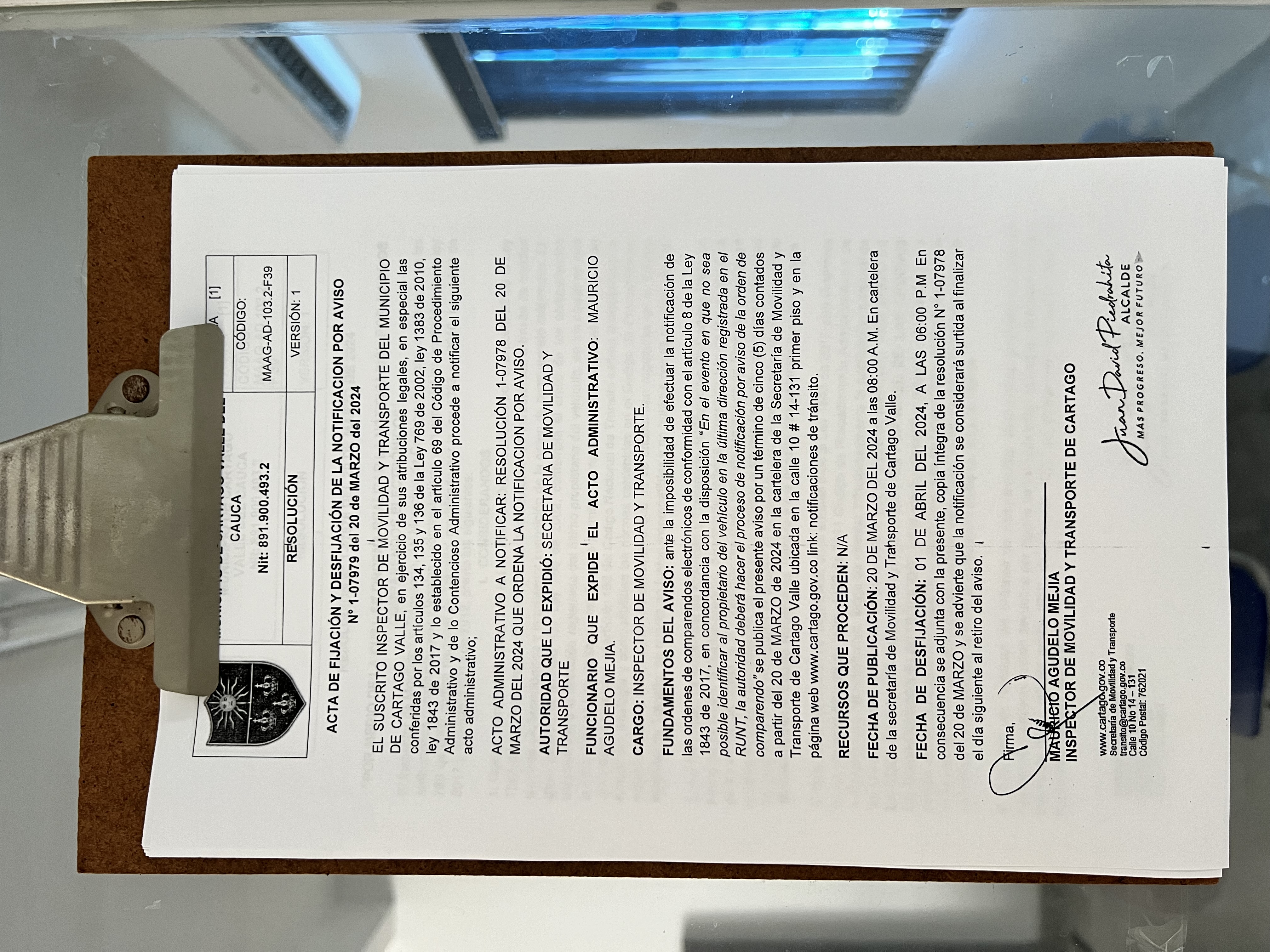RESOLUCION No. 1-07978 DEL 20 DE MARZO DEL 2024 QUE ORDENA LA NOTIFICACION POR AVISO