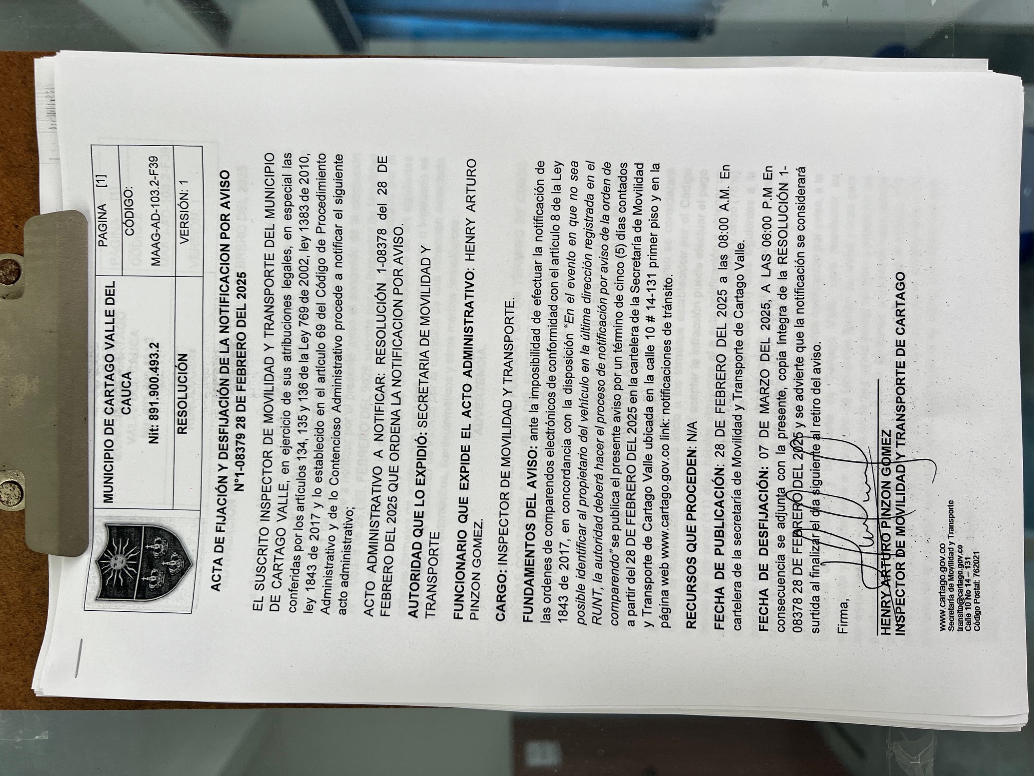 RESOLUCION No. 1-08378 DEL 28 DE FEBRERO DEL 2025 QUE ORDENA LA NOTIFICACION POR AVISO