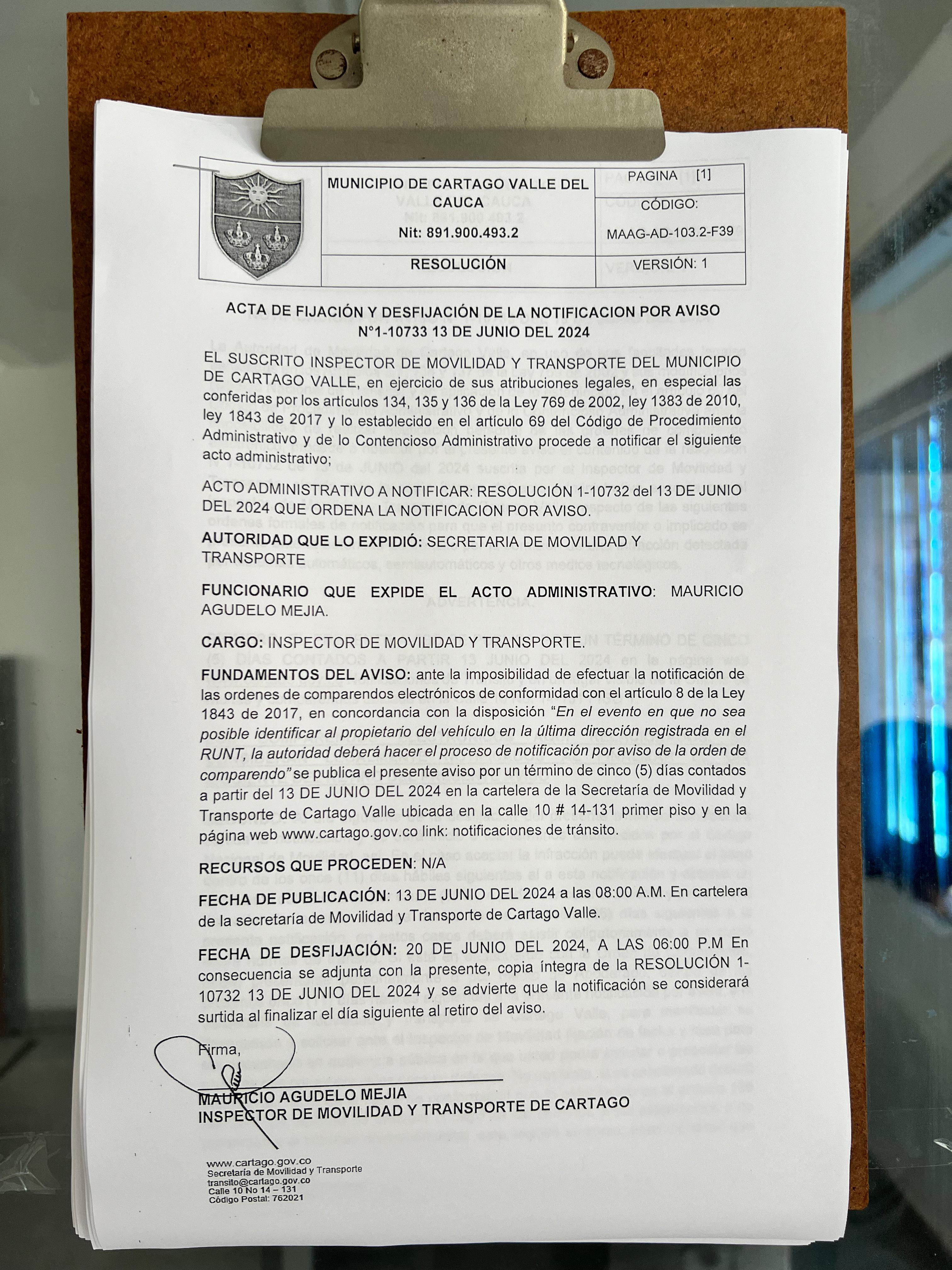 RESOLUCION No. 1-10732 DEL 13 DE JUNIO DEL 2024 QUE ORDENA LA NOTIFICACION POR AVISO