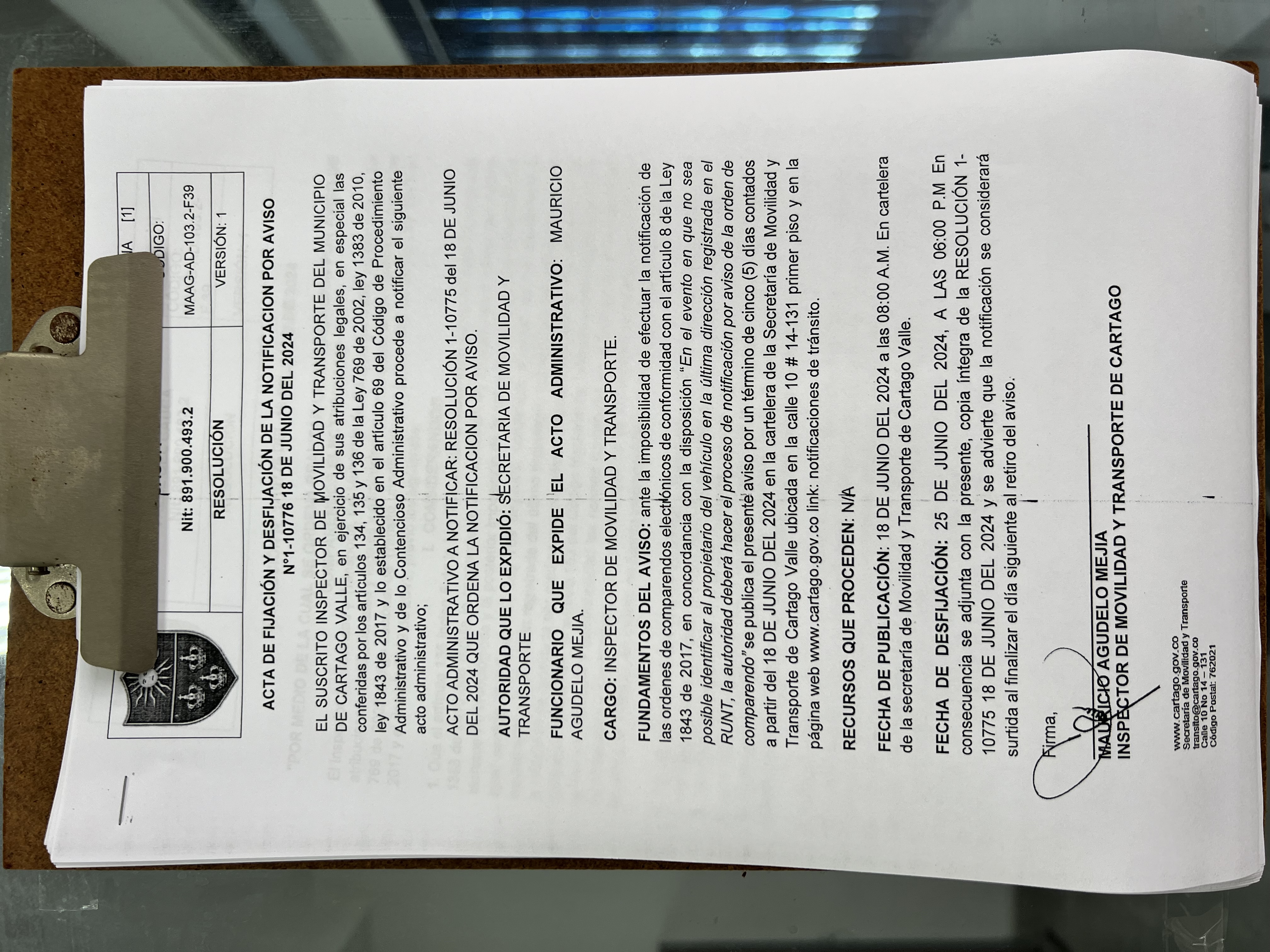 RESOLUCION No. 1-10775 DEL 18 DE JUNIO DEL 2024 QUE ORDENA LA NOTIFICACION POR AVISO