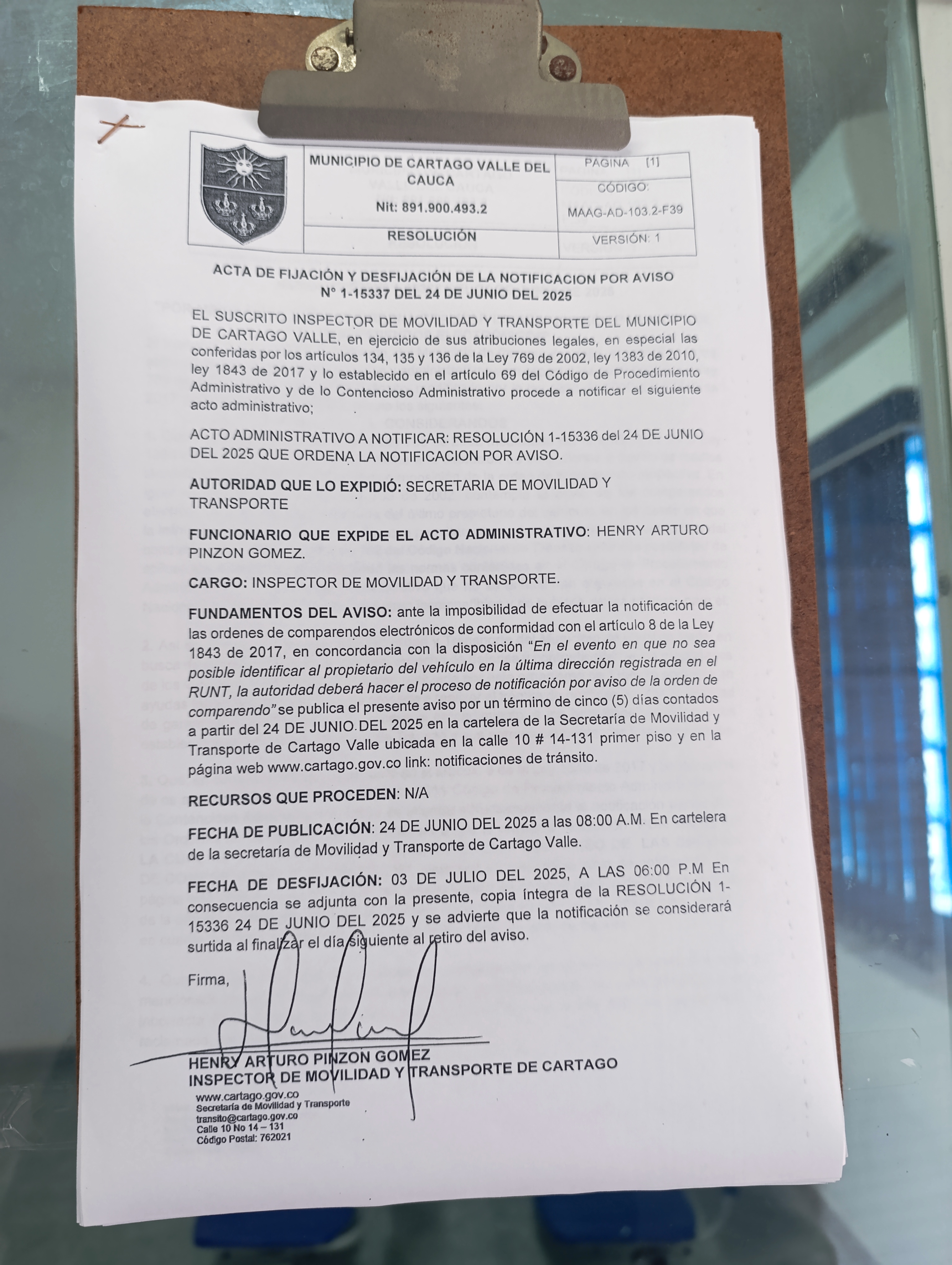 RESOLUCION No. 1-15336 DEL 24 DE JUNIO DEL 2025 QUE ORDENA LA NOTIFICACION POR AVISO