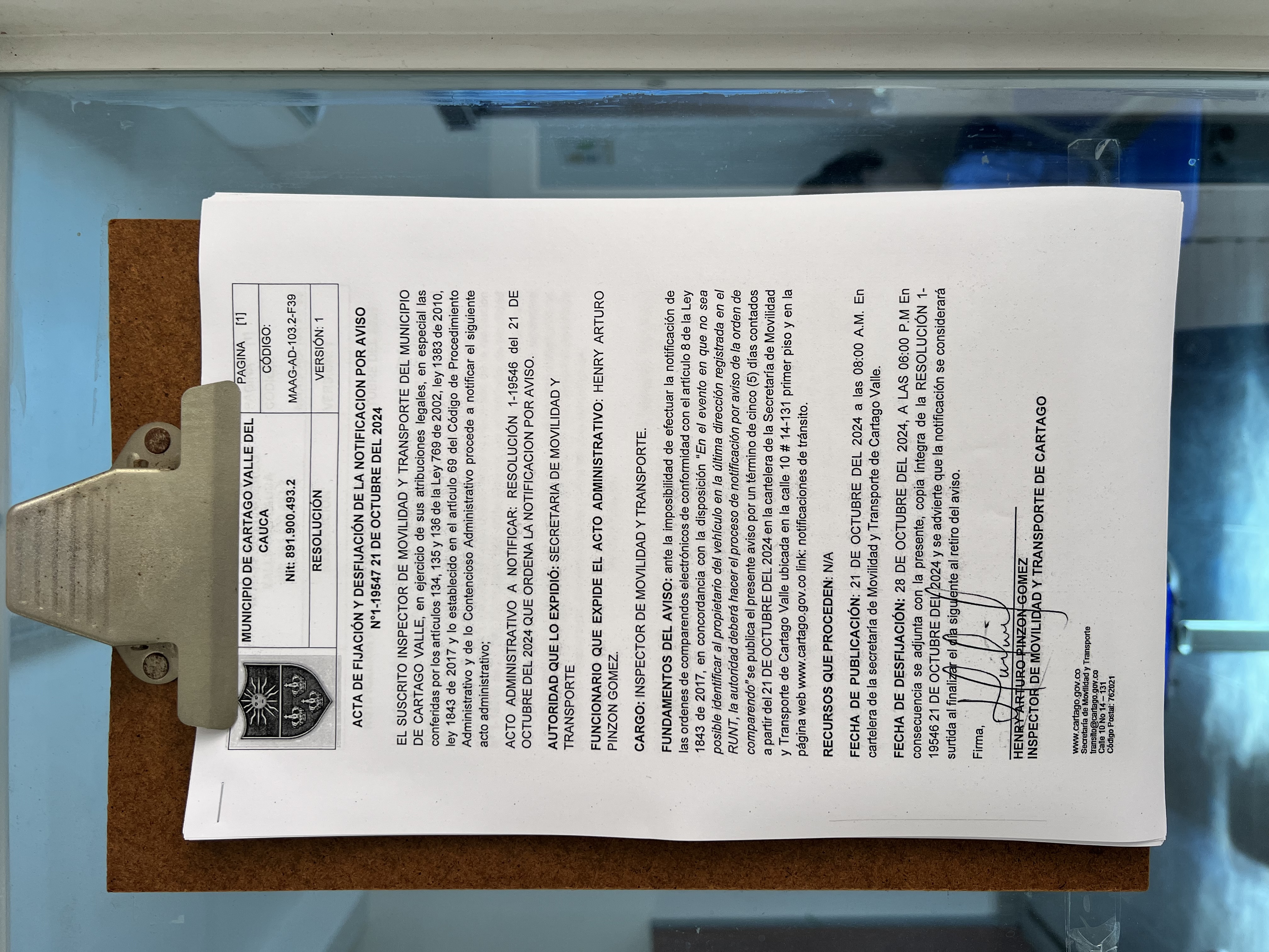 RESOLUCION No. 1-19546 DEL 21 DE OCTUBRE DEL 2024 QUE ORDENA LA NOTIFICACION POR AVISO