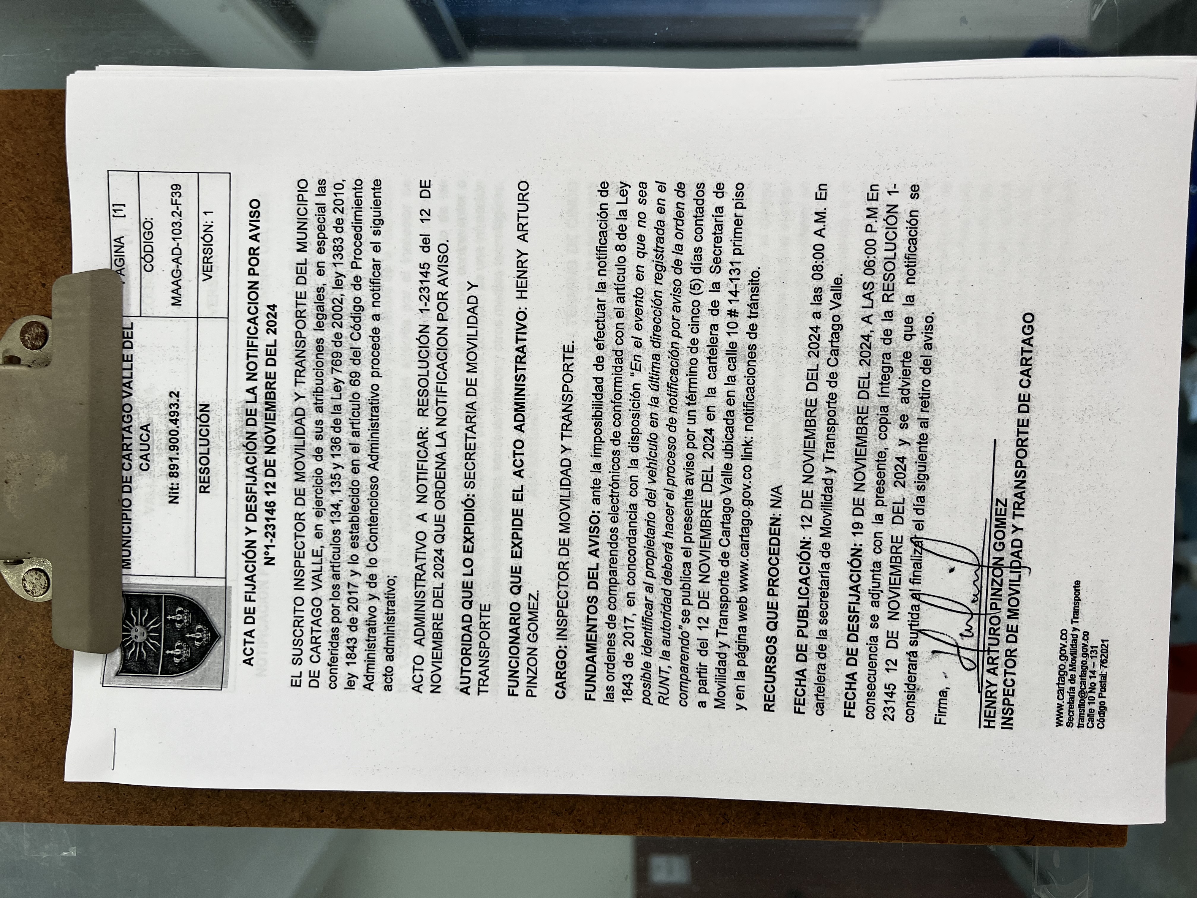 RESOLUCION No. 1-23145 DEL 12 DE NOVIEMBRE DEL 2024 QUE ORDENA LA NOTIFICACION POR AVISO