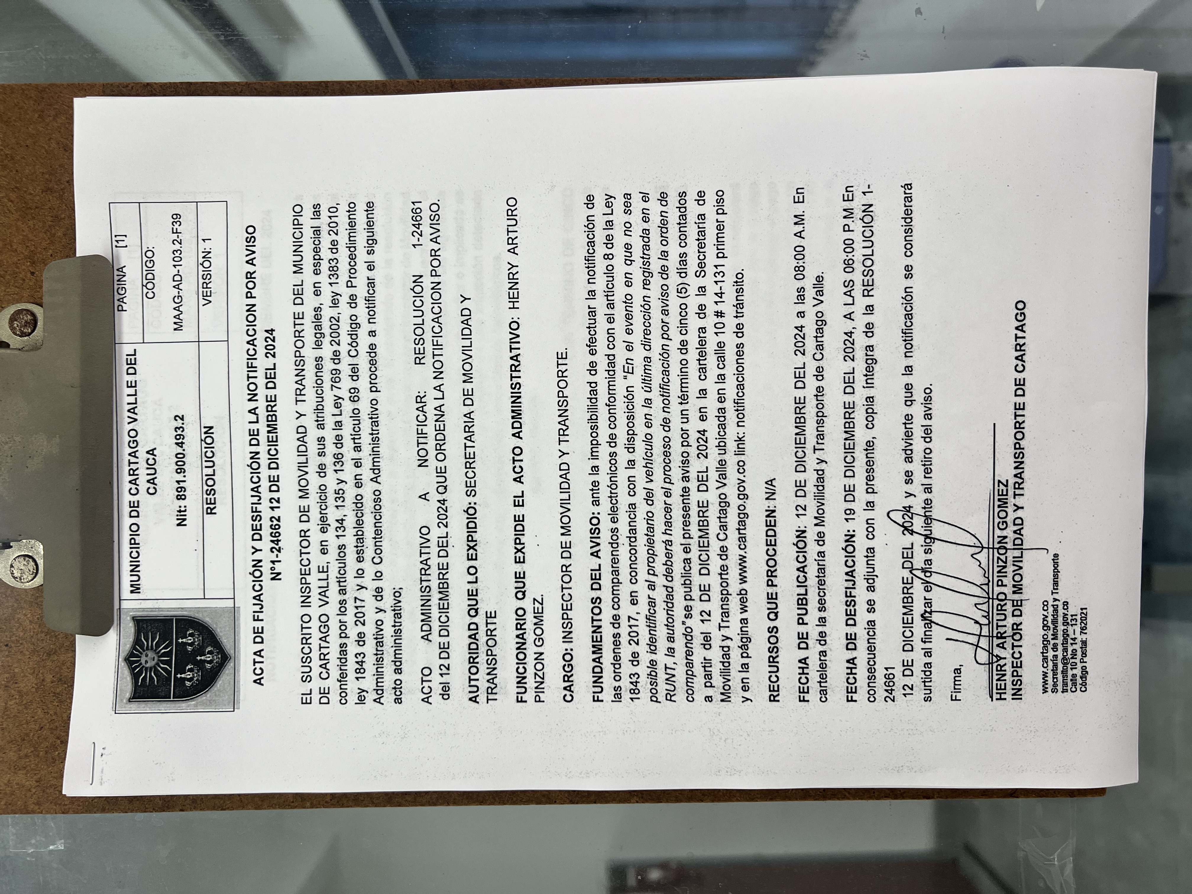 RESOLUCION No. 1-24661 DEL 12 DE DICIEMBRE DEL 2024 QUE ORDENA LA NOTIFICACION POR AVISO