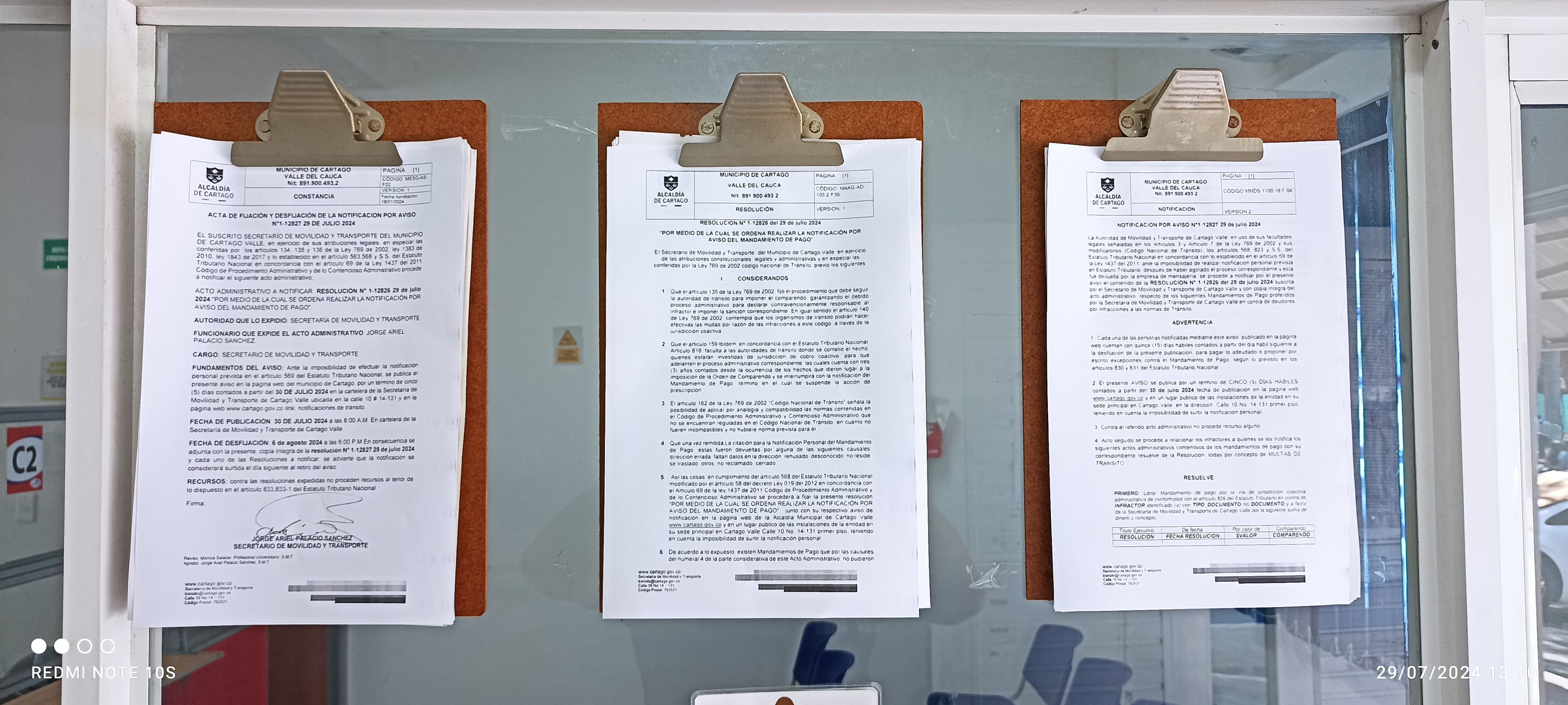 RESOLUCION NOTIFICACION MANDAMIENTO DE PAGO N° 1-12826